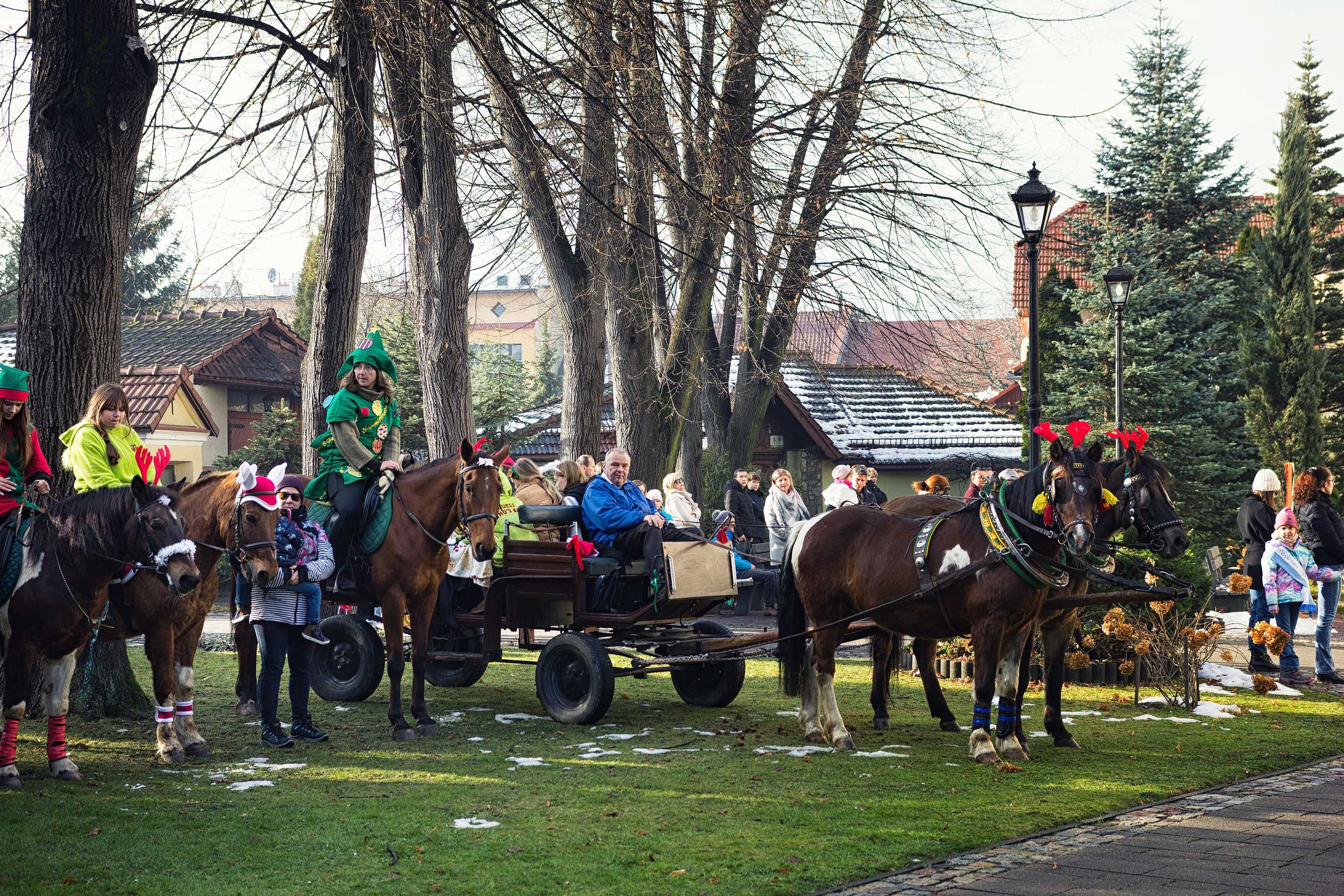 Jak co roku uczestnicy orszaku wyruszyli spod stanicy, skąd w barwnym korowodzie udali się w stronę kościoła św. Macieja w Andrychowie. Cała grupa prezentowała się niezwykle efektownie – jeźdźcy przebrani byli w świąteczne stroje: elfy, renifery, anioły. Również konie udekorowano w bożonarodzeniowe akcenty, co tworzyło niezwykle ciepłą i magiczną atmosferę.