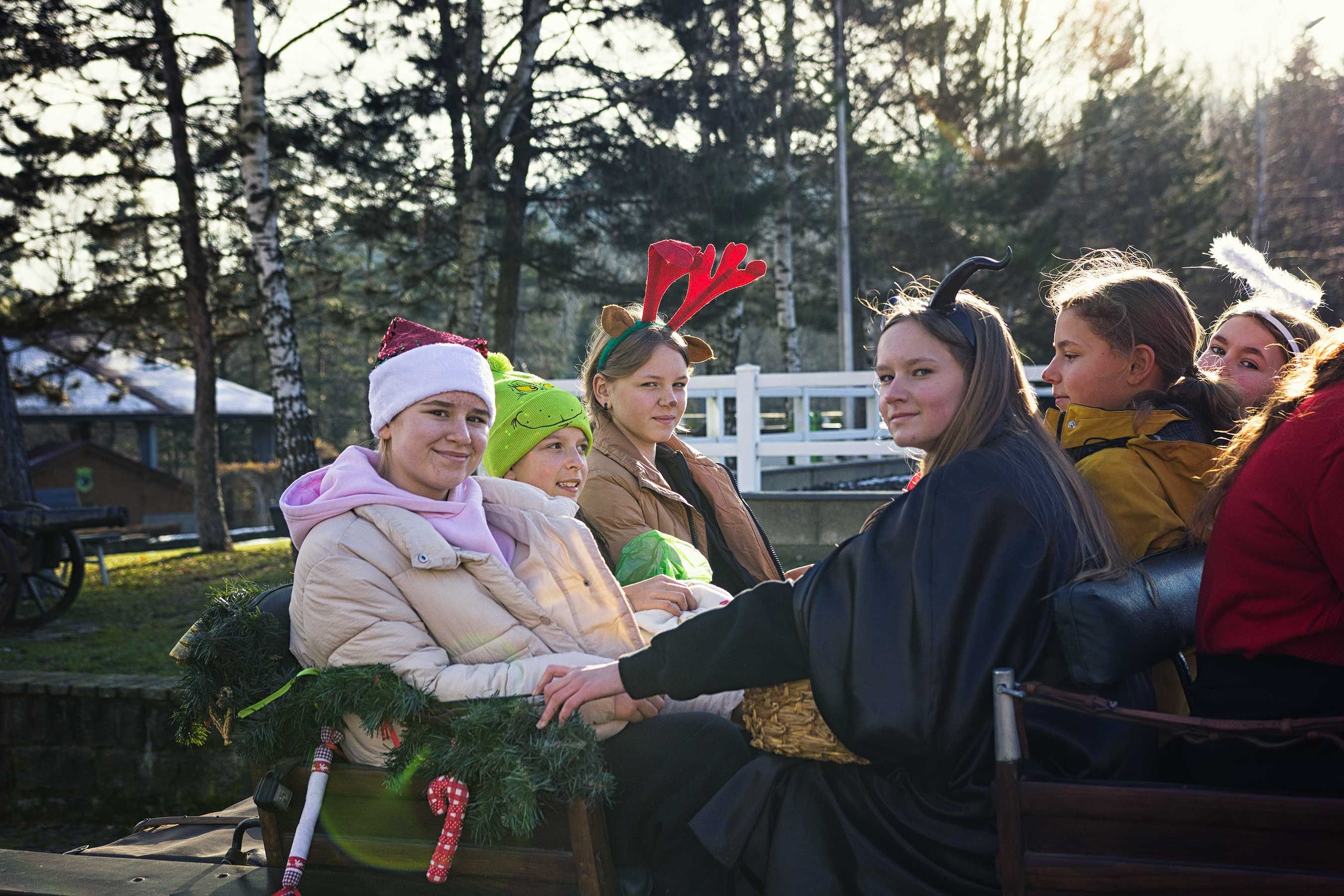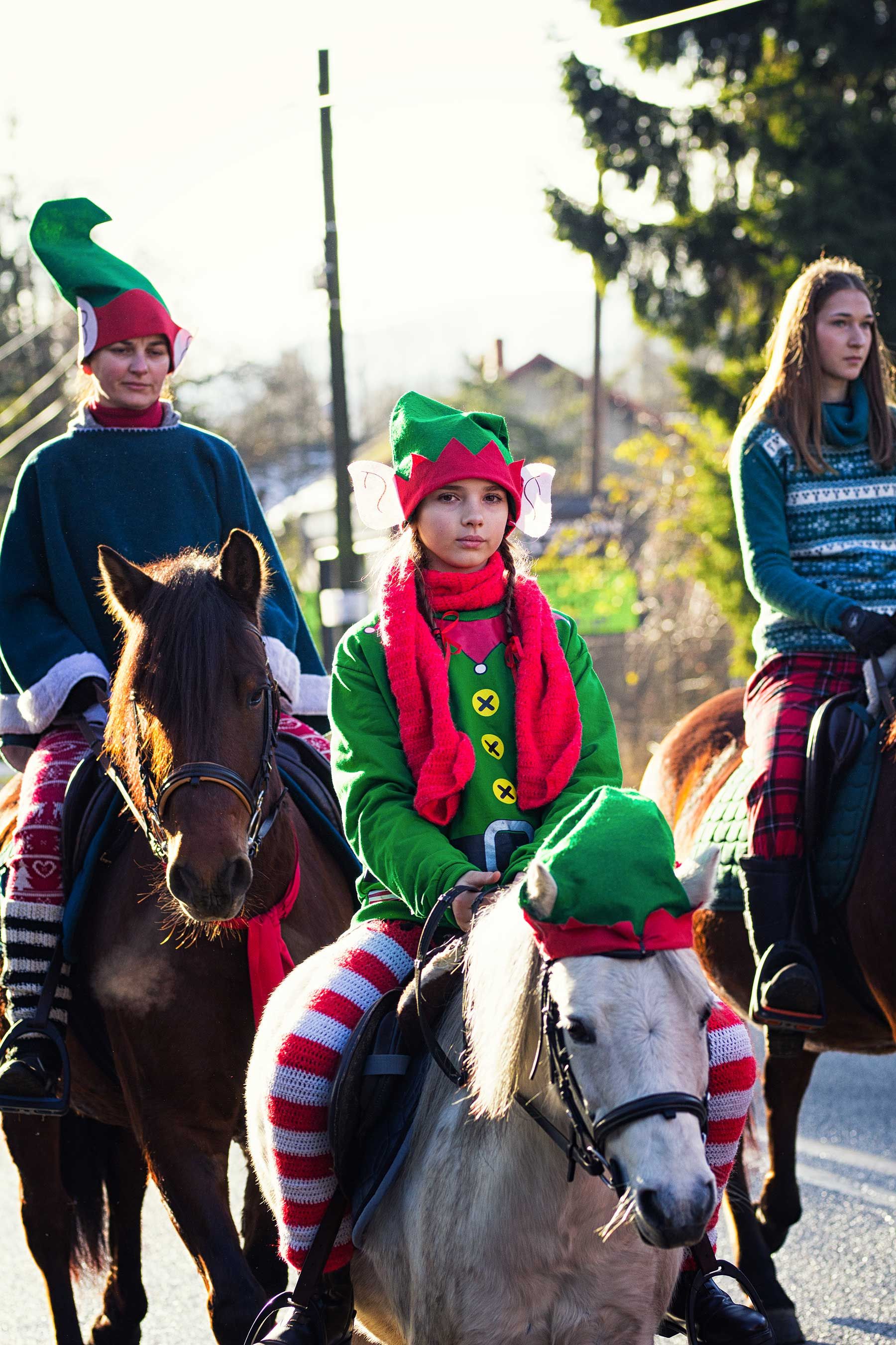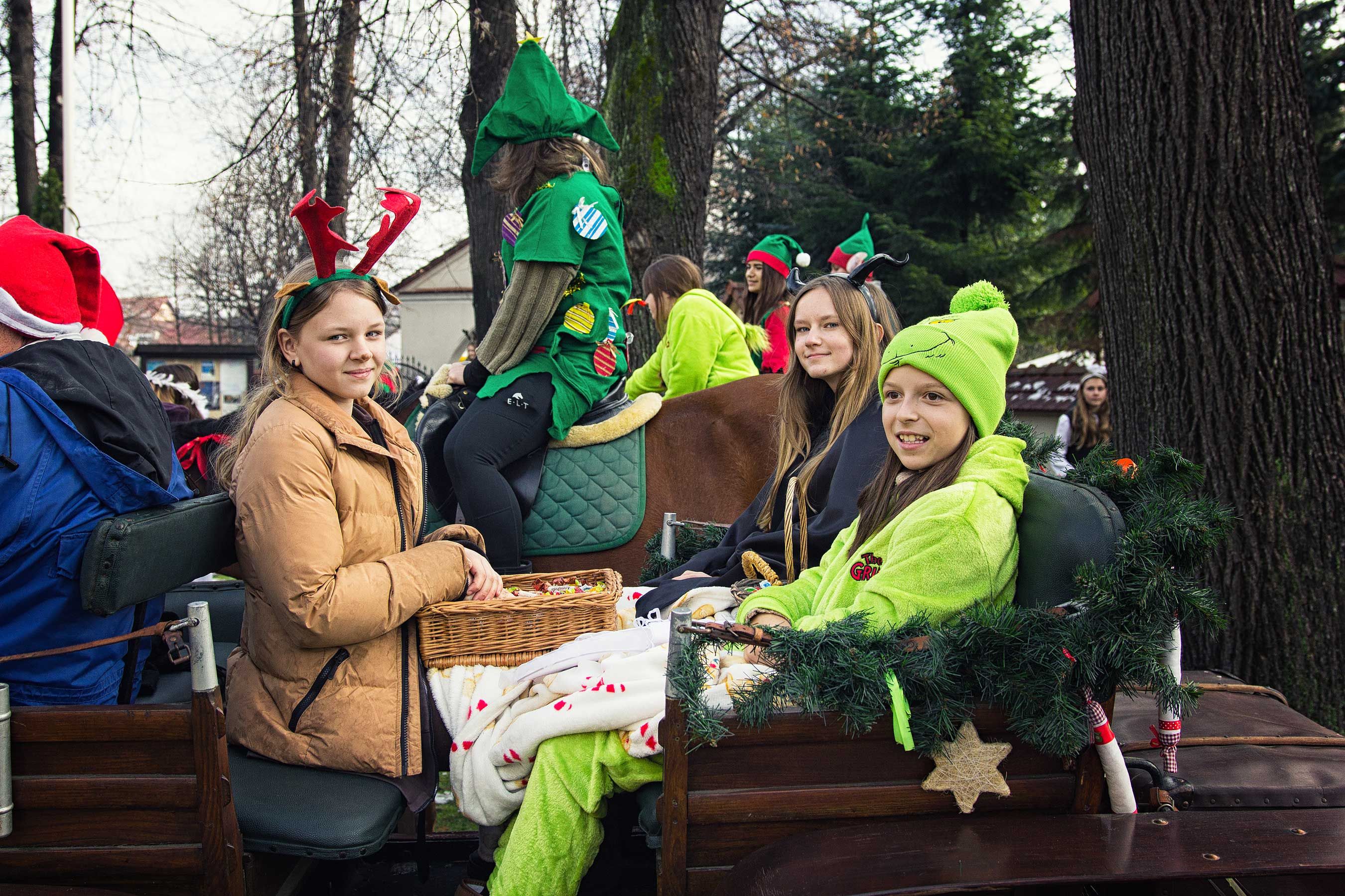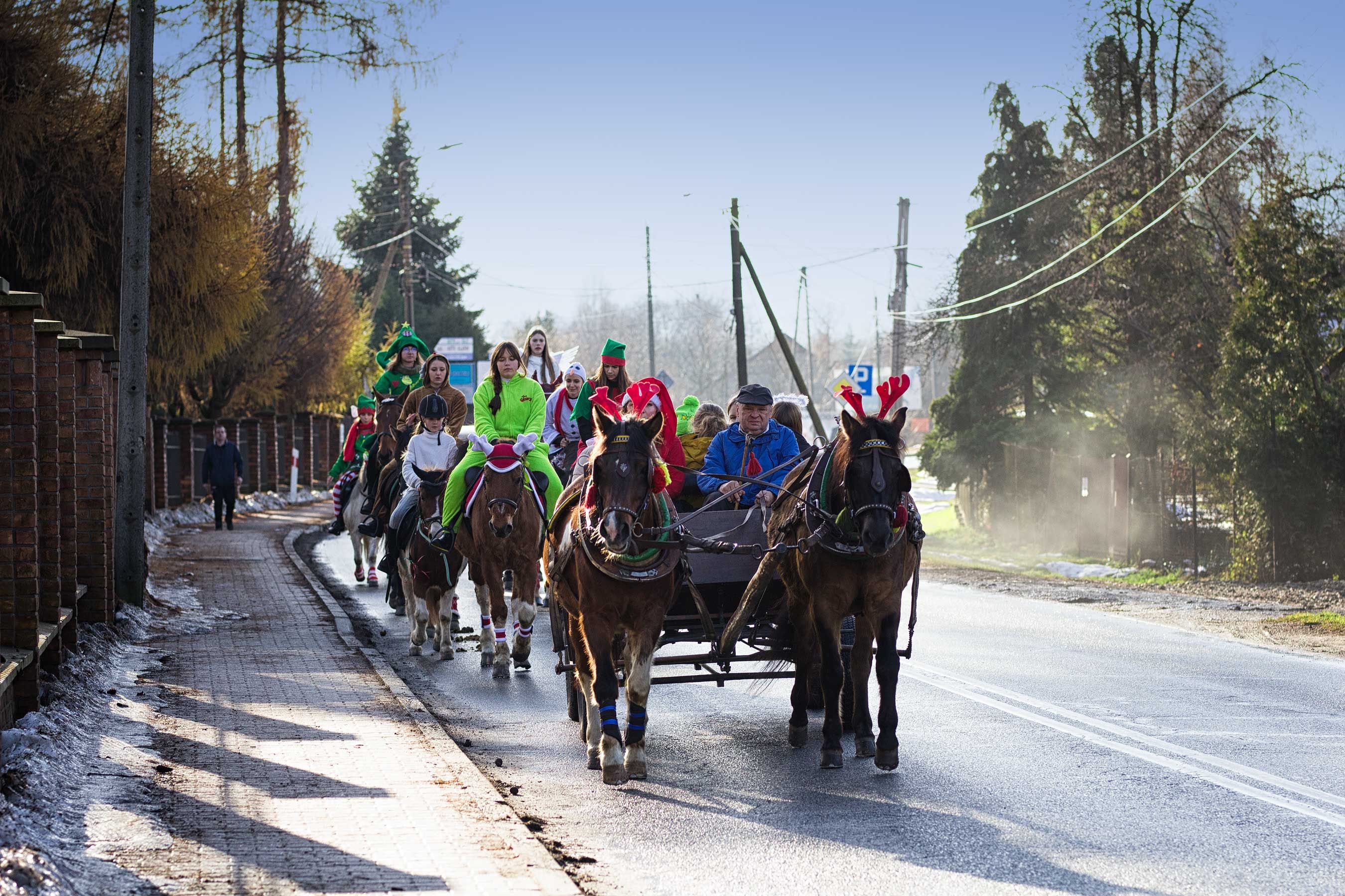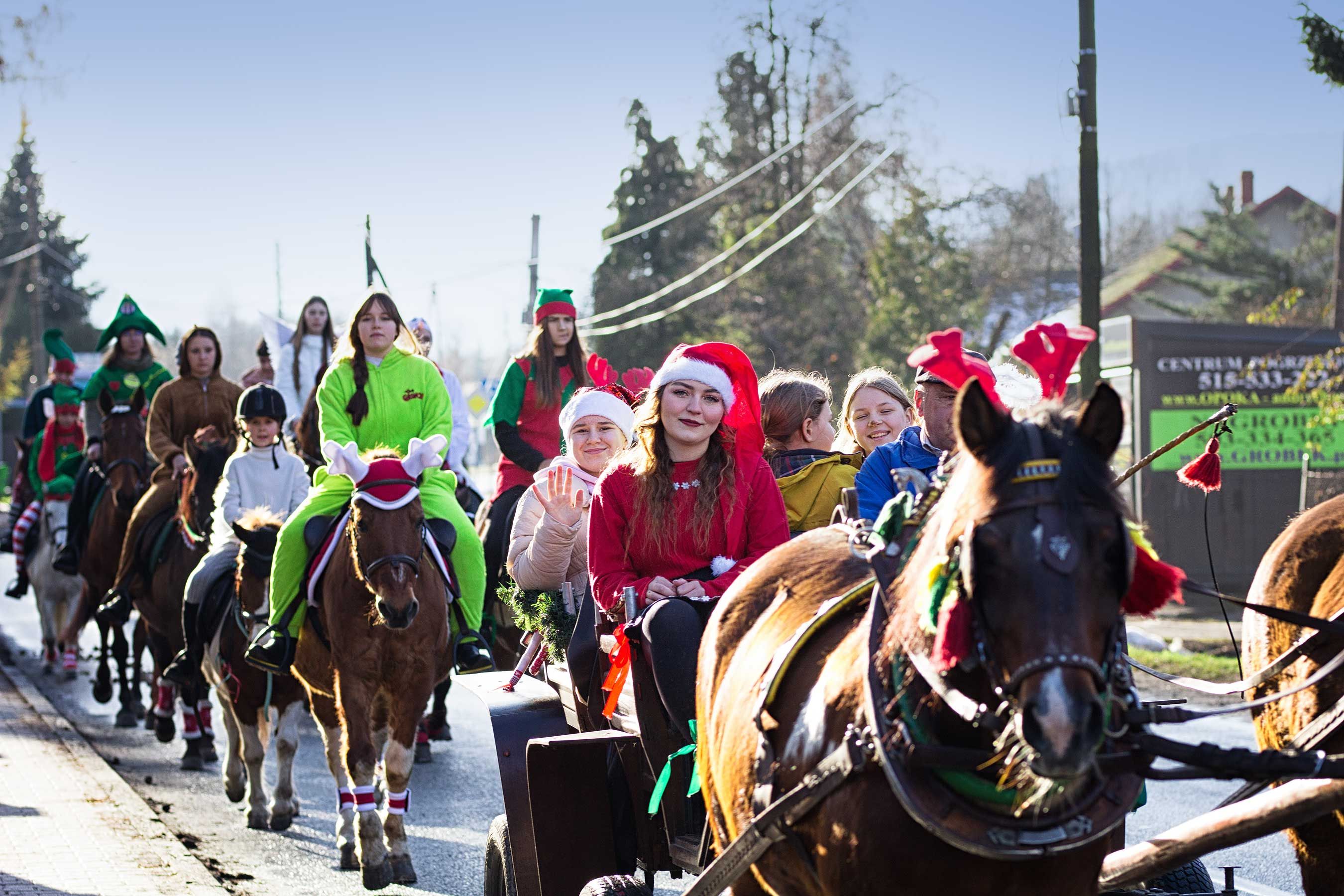 Jak co roku uczestnicy orszaku wyruszyli spod stanicy, skąd w barwnym korowodzie udali się w stronę kościoła św. Macieja w Andrychowie. Cała grupa prezentowała się niezwykle efektownie – jeźdźcy przebrani byli w świąteczne stroje: elfy, renifery, anioły. Również konie udekorowano w bożonarodzeniowe akcenty, co tworzyło niezwykle ciepłą i magiczną atmosferę.