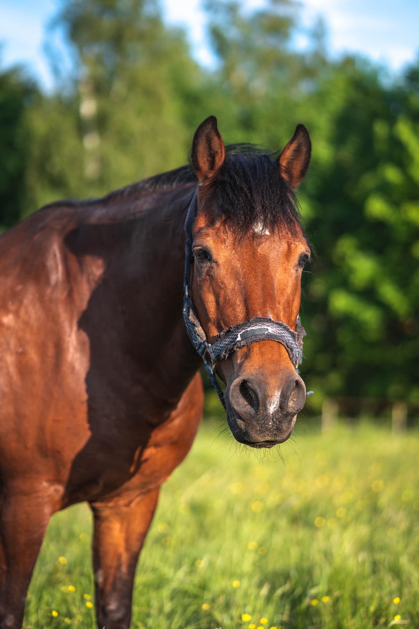 Na jeździe pojawia się w masce, bo to wrażliwy koń. Ma za sobą już sporo lat pracy, dzięki czemu sprawdzi się zarówno dla początkujących, jak i zaawansowanych jeźdźców.
